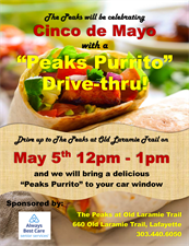Join us in celebrating Cinco De Mayo with delicious "Peaks Purritos!" All are welcome! Sponsored by: Always Best Care