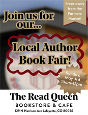 Come meet authors from our community and around Colorado! We'll have tables and tents set up for a Meet & Greet on these dates. Different authors will attend different dates, so be sure to catch them all!
